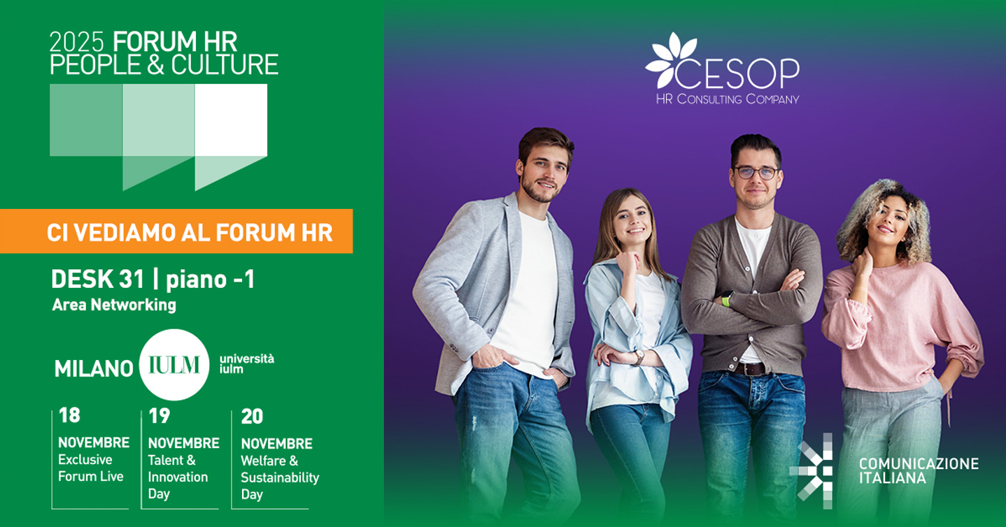 Cesop HR Consulting Company partecipa al Forum HR – People & Culture 2025 come espositore al desk 34 – piano -1, all’interno dell’Università IULM di Milano.
